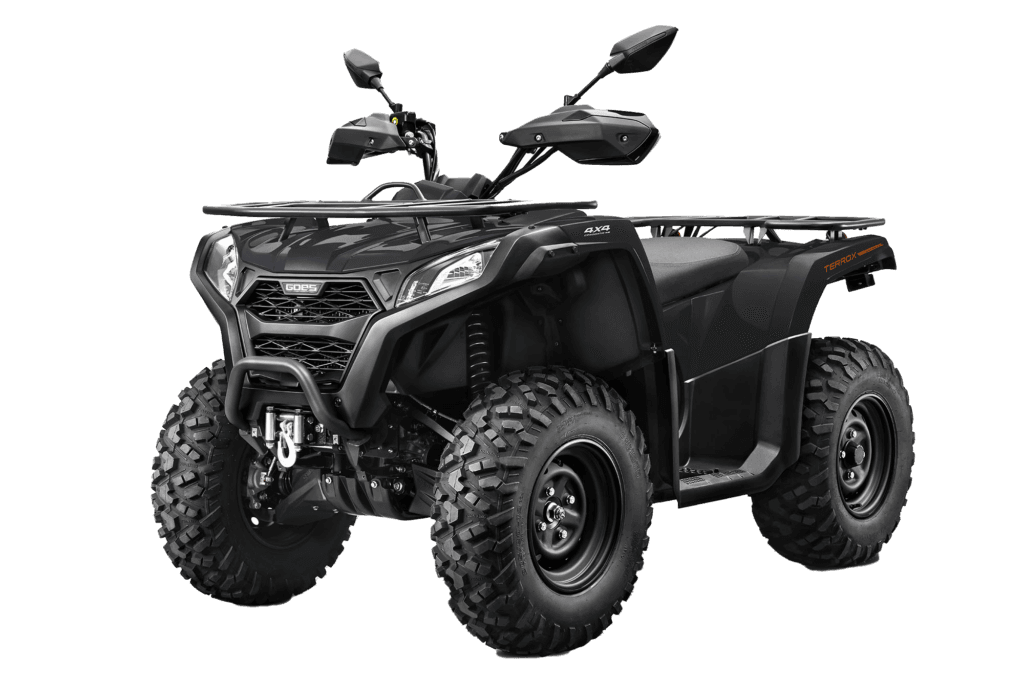 Bienvenue dans l’univers du tout-terrain avec le Goes Terrox 400, un quad conçu pour ceux qui recherchent polyvalence et robustesse. Avec son moteur monocylindre de 400cc et sa puissance de 27 chevaux, il vous offre la performance nécessaire pour affronter tous types de terrains. Que ce soit pour une escapade en pleine nature ou pour assister dans vos tâches quotidiennes, le Terrox 400 répond à toutes vos exigences avec une fiabilité à toute épreuve. Sa structure solide et sa garde au sol de 250 mm garantissent une excellente stabilité même sur les terrains les plus accidentés.