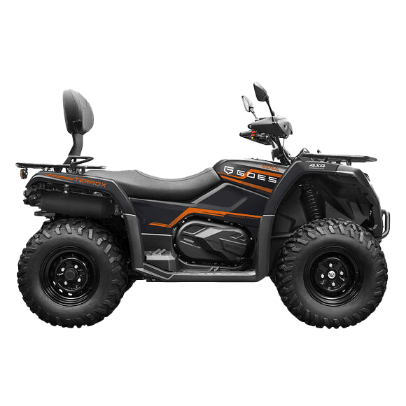 Le Goes Terrox 400L est un quad tout-terrain robuste conçu pour affronter les terrains les plus difficiles. Doté d’un moteur monocylindre de 400cc, il combine puissance et maniabilité, avec une transmission 2 ou 4 roues motrices pour une flexibilité optimale. Grâce à son châssis long, homologué pour deux places, il est parfait pour les aventures à deux ou pour accomplir diverses tâches utilitaires. Commandez dès maintenant et partez à l’aventure !
